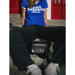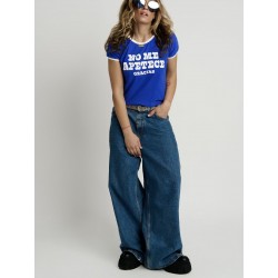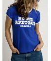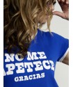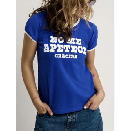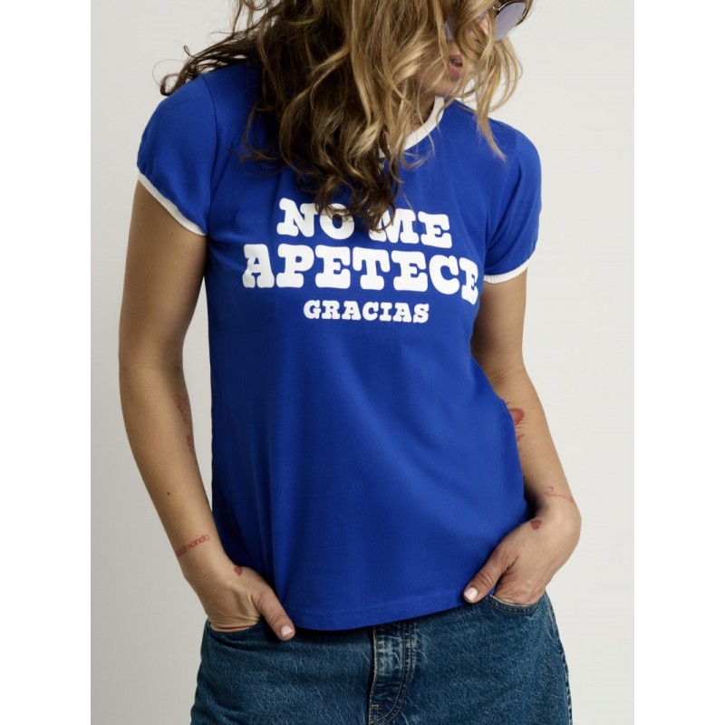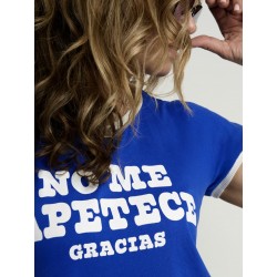 Cami Chica No me apetece Azul de Aire Retro. Camiseta de manga corta, en color azul intenso, super bonito, con la frase "No me apetece gracias" en letras de color blanco a contraste.