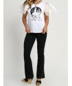Camiseta Tul Poemas de Aire Retro. Camiseta de manga larga efecto segunda piel de tul en color negro, con ilustraciones grandes en color blanco del dibujo de poemas, ya utilizado en un vestido. Un blanco y negro esencial que no puede faltar en tu armario.