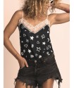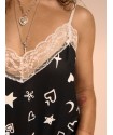Lencera Bandana de la marca Aire Retro. Camiseta de tirantes tipo lencera, con un estampado de estrellas y corazones, recién utilizado por la marca en un vestido de tul que tampoco puedes dejar pasar porque sienta increible. Tirantes finos regulables y encaje en escote y espalda en blanco a contraste.