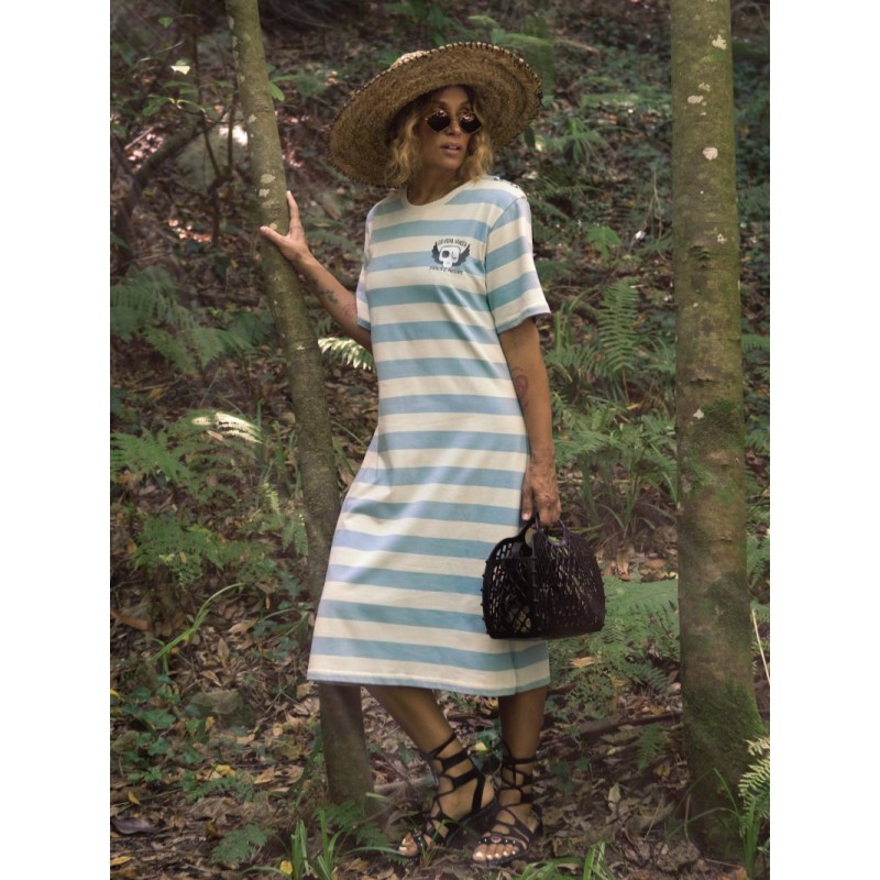 Vestido Rayas La Vida Vuela Azul Aire Retro