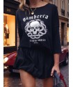 Vestido Verde Calavera Caviar de Aire Retro. Vestido corto de algodon, con tejido combinado en color verde y falda de color negro (tambien de algodon, tiene mucho cuerpo). Print frontal de la mitica calavera de aire retro en color negro y realizada con caviar tipo glitter que le da un toque muy chulo.