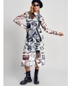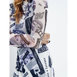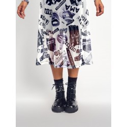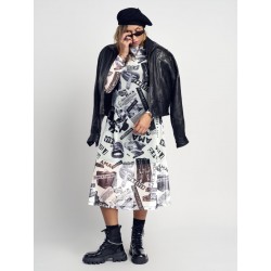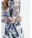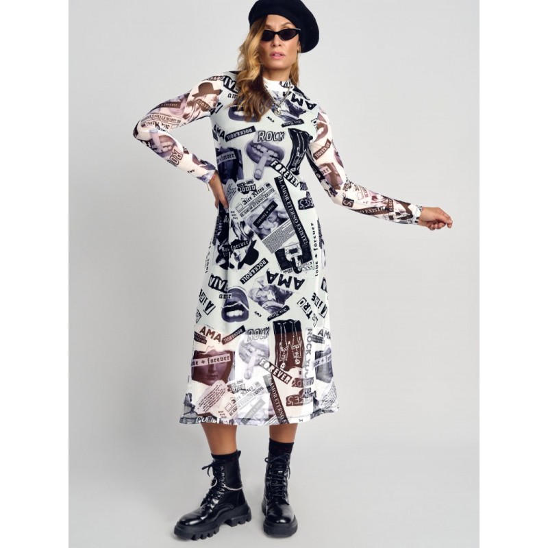 Vestido College Blanco de Aire Retro. Vestido midi de tul, con base en color blanco, total print college y con forro interior hasta medio muslo. De corte fluído, lo que le aporta mucha caída, convirtiéndolo en un vestido cómodo a la vez que elegante.