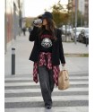 Sudadera Ballet de Aire Retro. Sudadera de color negro con cuello redondo y manga tipo murcielago y hombreras estilo ochentero. Estampado "ballet" en foil plata y efecto relieve. Viene con felpa gustosa y calentita en el interior para aprovecharla todo el invierno.