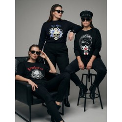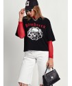 Camiseta Lady Violet Negra de Aire Retro. Camiseta de punto suave en color negro con la ilustración lady violet que nos enamoró en la versión tul. De manga larga.