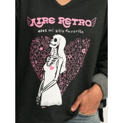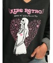 Camiseta Lady Violet Negra de Aire Retro. Camiseta de punto suave en color negro con la ilustración lady violet que nos enamoró en la versión tul. De manga larga.