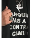 Camiseta Ballet Rosa de Aire Retro. Camiseta de manga corta, de algodon de color rosa y con print frontal de ballet, el esqueleto con tutu realizado en foil plateado.