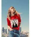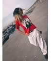 Vestido tipo Sudadera Llenx de ti de Aire Retro. Vestido corto con capucha, tipo sudadera, en manga larga, con base en color negro y maxi print frontal de dos esqueletos mirandose de frente, ilustracion mitica de la marca. En color blanco y rojo a contraste que queda genial!