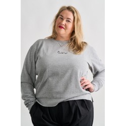 Sudadera Basica Gris de Anabel Lee. Sudadera de manga larga, en color gris claro con el logo en la parte frontal y la frase actitud + bordadas en hilo negro.