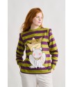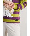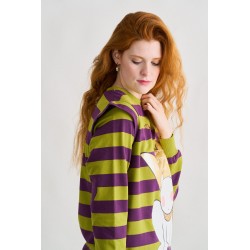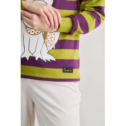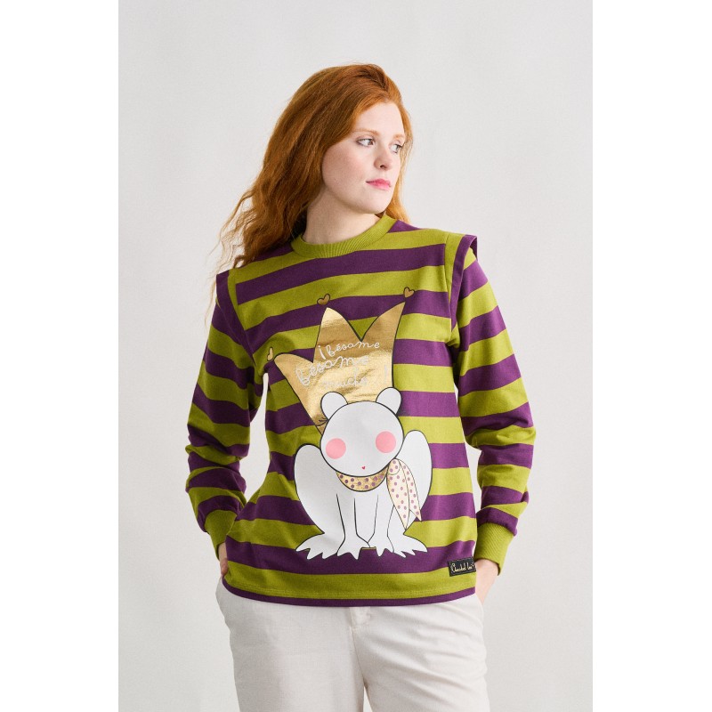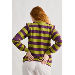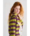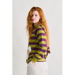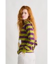 Sudadera Besame de Anabel Lee. Sudadera de manga larga, a rayas en color verde pistacho y berenjena, de corte recto y cuello redondo.