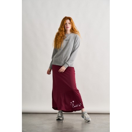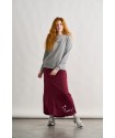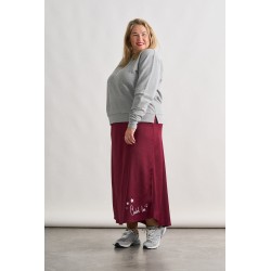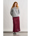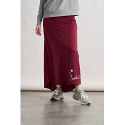 Falda Satinada Burdeos Anabel Lee. Falda larga de color negro, en tejido satinado elastico y de corte evase.
