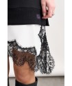 Espalda completamente bordada, con detalles de lentejuelas pequeñas en las guitarras de los lados de la chica y la frase "Nunca dejes de creer en ti misma".