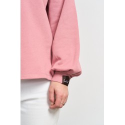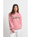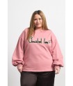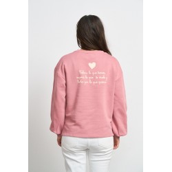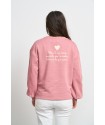 La frase del cuello va bordada en hilo lurex rosa y en la zona de la espalda, en el centro lleva una costura vista para darle un toque especial a la prenda.