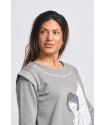 Puños rematados con corazones bordados en rojo.