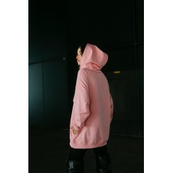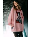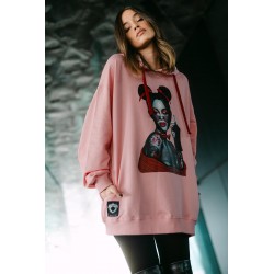 Sudadera Brave Spirit de la marca Be Happiness. Sudadera en color rosa pearl, con manga caída y capucha. Dispone de ilustración delantera en la que combinan tonos grises con rojo, color éste último que utiliza para los cordones de la capucha y que combina a la perfección. Tiene prácticos bolsillos laterales. De corte ámplio, oversize.