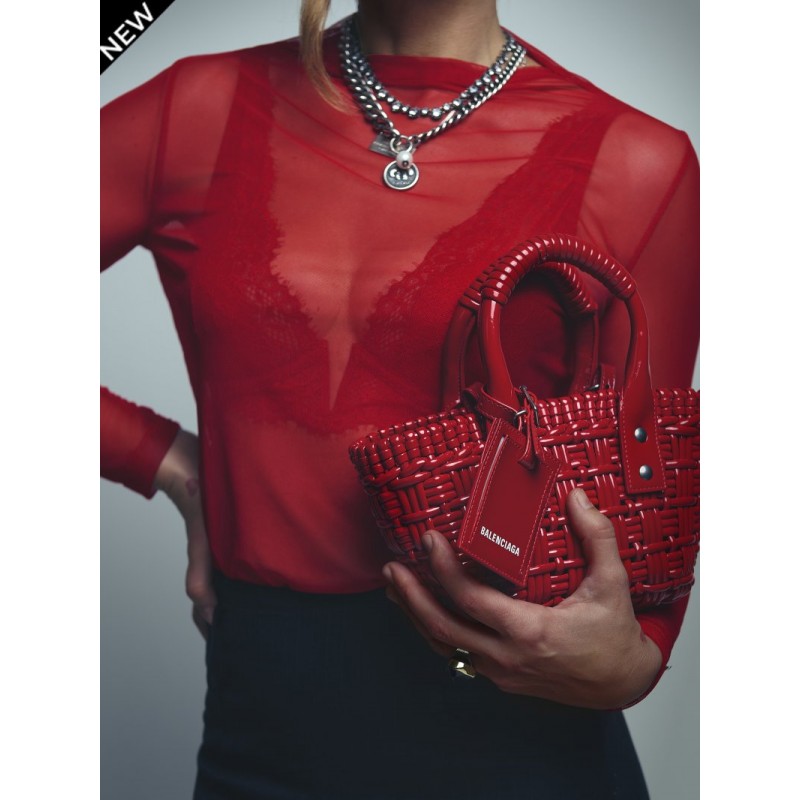 Una camisa básica se transforma si se lleva debajo de un top con textura y en un color vibrante. Para darle ese aire navideño sin recurrir al estampado de Papá Noel, nuestro top de tul Ohiana sobre un bralette negro o una camisa blanca de cuello alto, añade color y sofisticación.