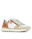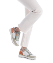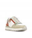 Deportivo plano Blanco / Gris Refresh. Zapatilla fabricada en material que imita la piel decorado con grabado de piel de reptil. Cierre de cremallera lateral y cordones regulables.