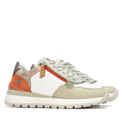 Deportivo plano Beige / Verde Refresh. Zapatilla fabricada en material que imita la piel decorado con grabado de piel de reptil. Cierre de cremallera lateral y cordones regulables.