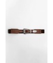 Dora Belt Minueto. Cinturón elástico estrecho, en color marrón , realizado con goma elástica y frontal con material imitación a cuero en color marrón. Hebilla frontal metálica con un diseño original.