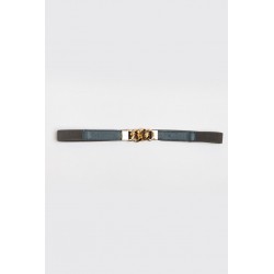 Bahamas Belt Minueto. Cinturón elástico estrecho, en color marrón, realizado con goma elástica y frontal con material imitación a cuero en color marrón. Hebilla frontal estrecha decorativa en dorado. Queda ideal con aquellos vestidos con cinturilla elastica y con aquellos otros que siendo mas amplios queremos entallar un poco mas. Más ropa Minueto en Sopotey.