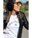 Camiseta Frida Rosa de El Sueño de Lola. Camiseta con base en color negro, con maxi print frontal de la frida de la marca, con las flores de la parte superior en foil rosa.