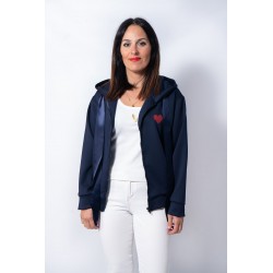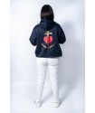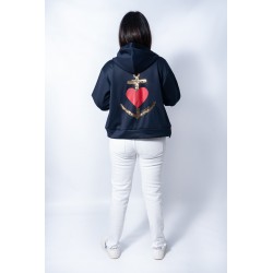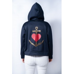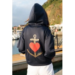 <p>Sudadera con cremallera frontal, detalle de corazon rojo en la zona delantera en el pecho y maxi print trasero, con una gran ancla con pailettes dorados (pequeñas lentejuelas) y un gran corazon rojo en el centro en glitter.</p>