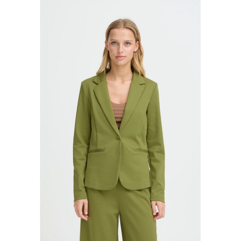 Blazer entallada corta en color Iguana de la marca ICHI. Una blazer regular fit, con corte clásico muy versátil, ya que te acompañará tanto en tus outfits más formales como en los informales. De tejido suave al tacto y cómodo sobre el cuerpo. Una prenda que no puede faltar en tu fondo de armario y que hará de tus salidas un elemento perfecto para completar el look.
