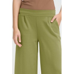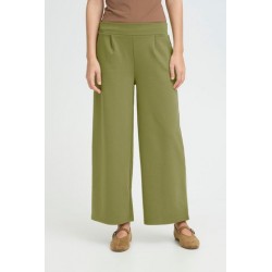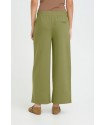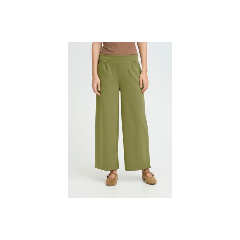 Pantalon Kate Ancho Tobillero Iguana ICHI. Pantalon de tiro alto, con elastico en la cinturilla para un mejor ajuste y fajin delantero. Lleva dos pinzas en el frontal lo que estiliza mucho la figura y facilita resalta la figura con los bolsillos laterales.