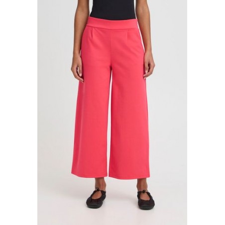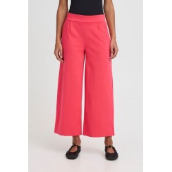 Pantalon Kate Ancho Tobillero Teaberry ICHI. Pantalon de tiro alto, con elastico en la cinturilla para un mejor ajuste y fajin delantero. Lleva dos pinzas en el frontal lo que estiliza mucho la figura y facilita resalta la figura con los bolsillos laterales.