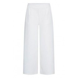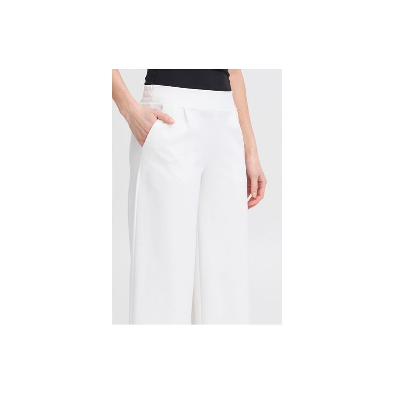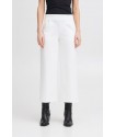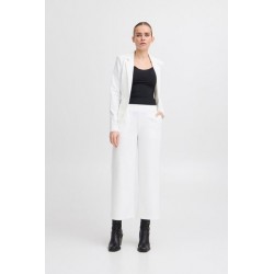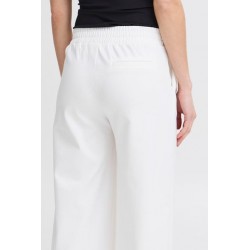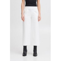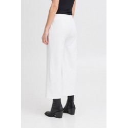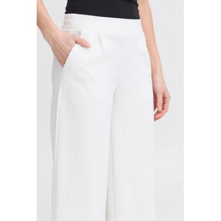 Pantalon Kate Ancho Tobillero Cloud Dancer ICHI. Pantalon de tiro alto, con elastico en la cinturilla para un mejor ajuste y fajin delantero. Lleva dos pinzas en el frontal lo que estiliza mucho la figura y facilita resalta la figura con los bolsillos laterales.