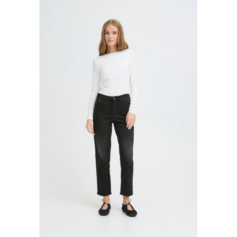 Pantalon Twiggy Raven Washed Black de la marca ICHI. Pantalón vaquero negro con efecto semidesgastado, de estilo clásico con pernera recta y cinco bolsillos. De tiro alto para un cómodo ajuste y favorecedor. Largo hasta el tobillo.