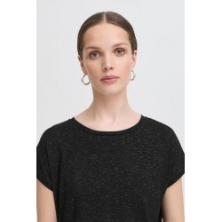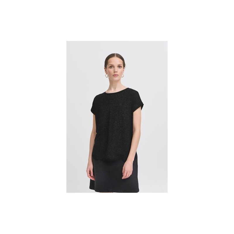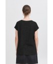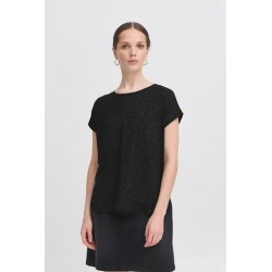 Camiseta Rebel 6 Black de la marca ICHI. Camiseta en un color negro con brillo, de corte holgado, cuello redondo y manga corta. Ligeramente más larga por la parte de atrás, con aberturas laterales y bajo curvo. De tejido suave y cómodo, ideal para el día a día. Combínalo con un estilo informal con cualquier vaquero que ofrece la marca o incluso con los trajes para un estilo más serio pero cómodo.