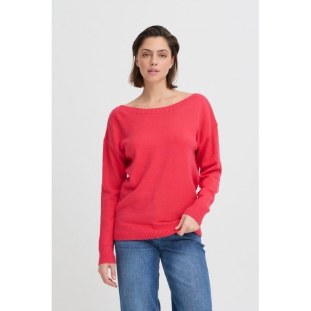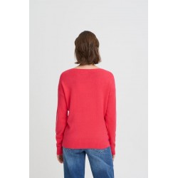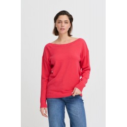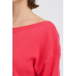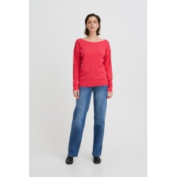 Jersey Sella Teaberry de la marca ICHI. Jersey de corte recto y ámplio con cuello barco y manga de hombro caído. Una prenda ideal para esta temporada, de tacto muy muy suave, con el que podrás completar tu look.