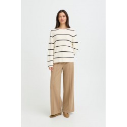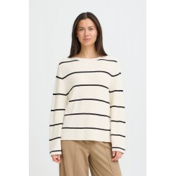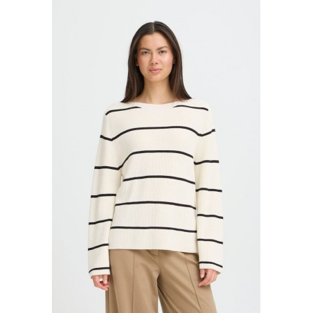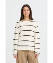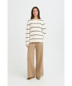 Jersey Boston 6 Black Stripe de la marca ICHI. Jersey de corte recto y ámplio con cuello barco y manga larga ámplia en color blanco con rayas horizontales finas en color negro, muy favorecedor. Una prenda ideal para esta temporada y para cualquier ocasión.