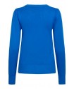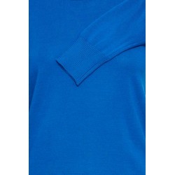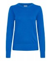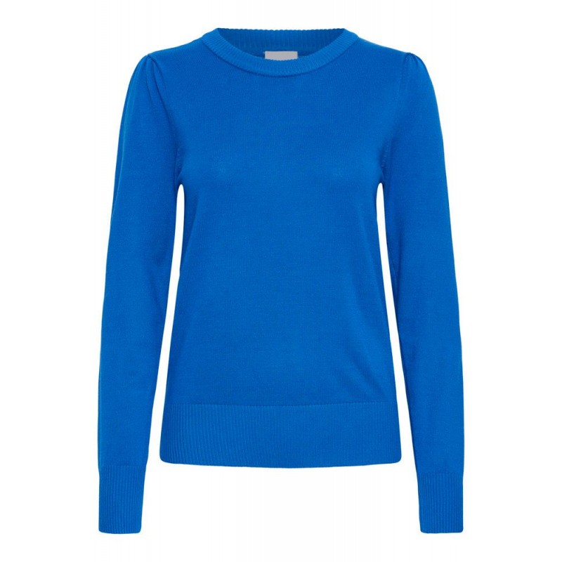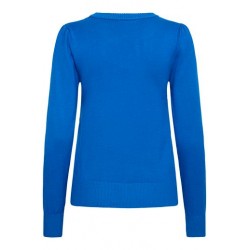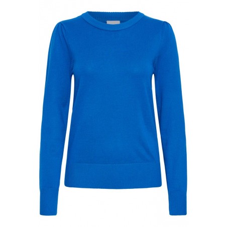 Jersey Luls Puff Nebulas Blue de la marca ICHI. Jersey en un tono azul eléctrico, intenso y profundo con un diseño regular fit y una manga que en hombro parte de un sutil fruncido que le da un toque más especial a la prenda. De cuello redondo y manga larga, un diseño clásico con mucho potencial para tus outfits.