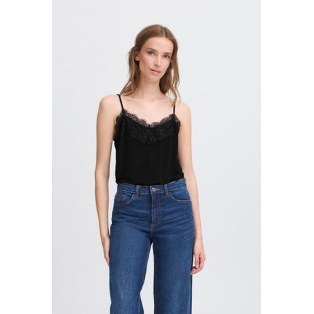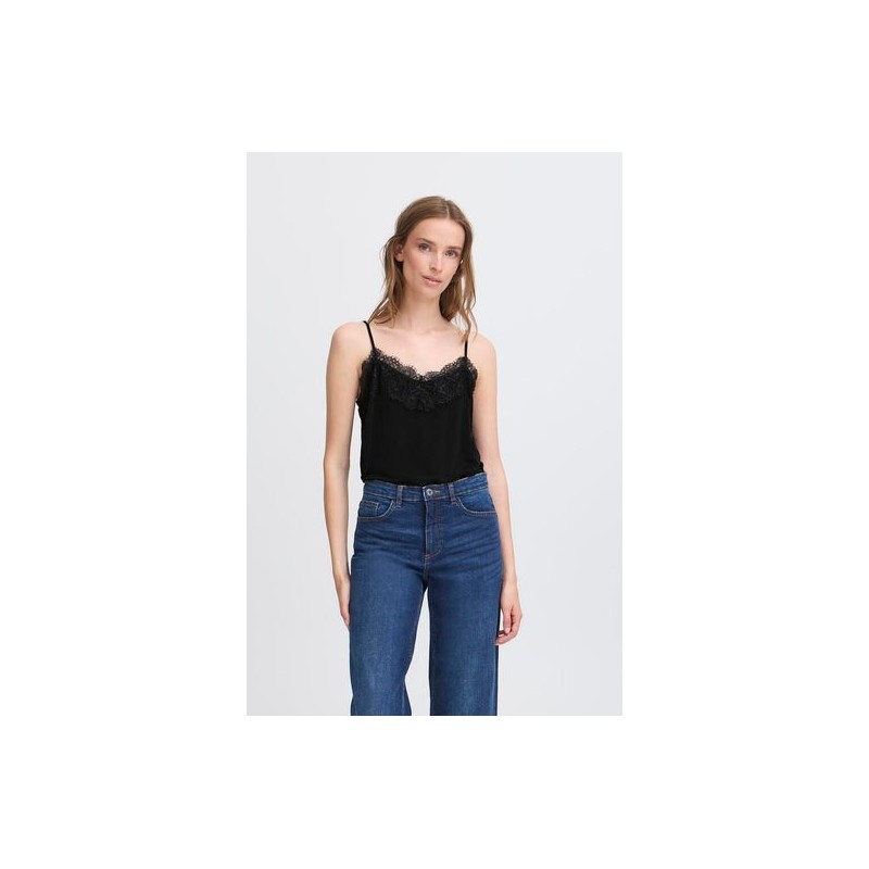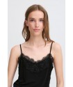 Camiseta Like To2 Black de la marca ICHI. Camiseta lencera de tirante ajustable con corte holgado y elegante escote en pico con encaje en color negro. De tejido súper suave que te dará una comodidad total durante el día. Una prenda versatil para un look casual o elegante, ya sea puesta sóla o con otras capas y que tome el protagonismo. Anímate a llevarlo con cualquiera de los trajes que te ofrece la marca, en la oficina o en cualquier evento que se te presente, y convierte el look en elegante y cañero al mismo tiempo.