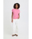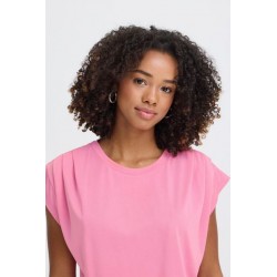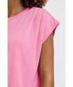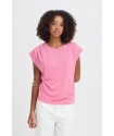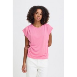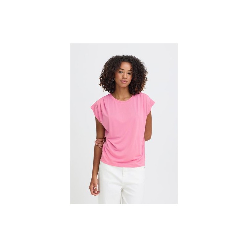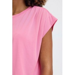 Camiseta Lisken To Wild Orchid de la marca ICHI. Camiseta ámplia de silueta recta, cuello redondo y detalles plisados en los hombros que le aportan elegancia y textura. Realizada en rosa chicle, un color que no sólo llevarás en esta temporada de primavera sino que en verano te dará un juego increible con tus looks playeros y el tono más moreno que lucirás en tus vacaciones. Una camiseta de tacto suave que podrás combinar con alguno de los trajes que ofrece la marca o utilizar con un vaquero para un estilo informal y cómodo.