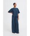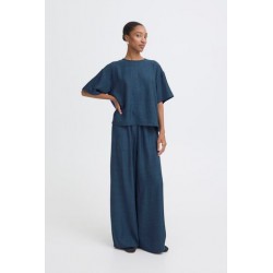 Blusa Katiko True Navy Melange de la marca ICHI. Blusa de silueta ámplia con cuello redondo y detalle único en la espalda de tres lazadas en el corte vertical. Blusa holgada y fresca de manga caída que podrás combinar con cualquier look.
