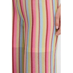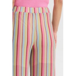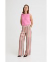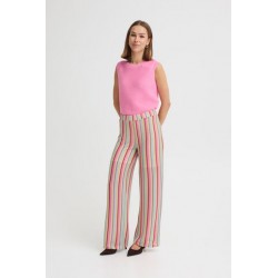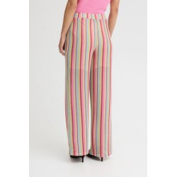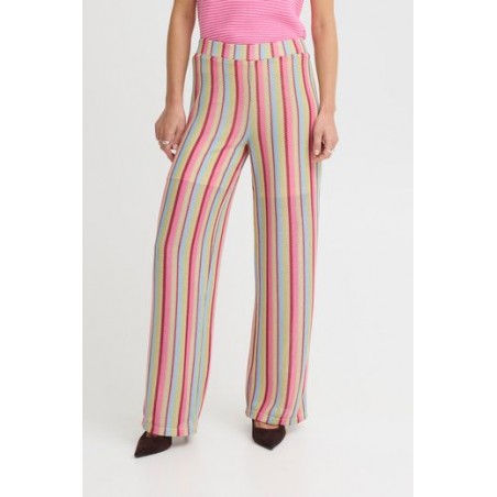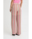 Pantalon Libella Multi Pastel Stripe de la marca ICHI. Pantalon fluído de pernera ancha y tiro alto, con cinturilla elástica. Con diseñio de rayas verticales a todo color que visualmente alargan la pierna y la estilizan. Un pantalón cómodo, caladito para toda la temporada, que podrás aprobechar incluso todo el verano. Con forro interior tipo short para que no se transparente nada.
