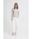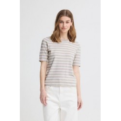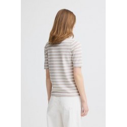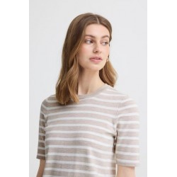 Jersey Luls O-Neck Small Oatmeal White Stripe de la marca ICHI. Jersey a rayas blancas y crudas, de manga corta y cuello redohdon en un diseño refular fit muy cómodo.