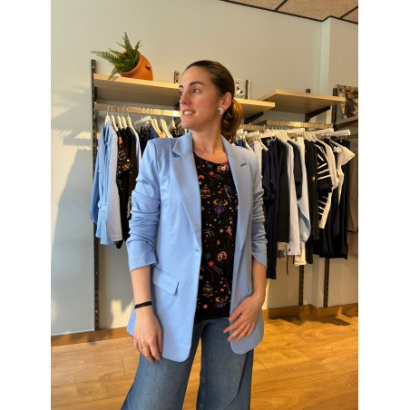 Blazer Kate Larga Bel Air Blue ICHI. Una blazer regular fit, con corte clásico muy versátil, ya que te acompañará tanto en tus outfits más formales como en los informales. De tejido suave al tacto y cómodo sobre el cuerpo. Una prenda que no puede faltar en tu fondo de armario y que hará de tus salidas un elemento perfecto para completar el look.