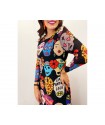 Blazer Sauvage de La Pantera Lola. Chaqueta tipo blazer de corte recto y oversize, de tela efecto neopreno, muy ligera y elástica. Print combinado animal print con otros elementos como son las calaveras, estrellas, rayos... y una pantera en el bajo frontal izquierdo.