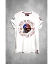 MCamiseta Chico LASAL 100 Yardas College Blanca. Camiseta en color blanco con manga corta. Dispone de bordados de 100 yardas en ambas mangas y de estampado delantero de una calavera puesta en perfil con un casco de fútbol americano y rodeado de la frase "american football" "college league yarders" "1990"