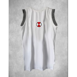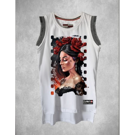 Camiseta exclusiva de mujer Bellezza Blanca. Camiseta en color blanco, de cuello redondo, sin mangas pero con aplicaciones exclusivas en las mismas.