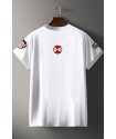 Lleva bordado en el frontal el numero aleatorio (del 1 al 100) en color blanco junto con el logo de la firma engomado en el lado izquierdo, mientras que en el derecho lleva bordada un ala y una corona en rojo.