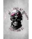 Camiseta exclusiva de mujer The Mom Rosa. Camiseta en color rosa, sin mangas y con cuello redondo. Maxi print frontal de una carta de baraja en la que sale una mujer esqueleto con su bata y sus rulos tomándo un café y la palabra "THE MOM", todo ello junto a unas flores combinando el gris con el rosa. Lleva aplicaciones excluvas del modelo en los hombros que le dan un toque más cañero a la prenda.