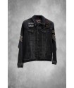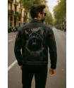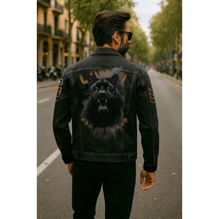 Cazadora Vaquera chico LASAL Panther Negro. Cazadora vaquera con elastán en color negro con cierre de botones y bolsillos delanteros laterales y en pecho. Detalle de puños elásticos en algodón negro que le aportan un toque diferente. Dispone de bordados en pecho y mangas fabricados por la propia marca e incluídos manualmente en el propio tejido de la cazadora. En la trasera de la prenda presenta una impresión digital de una pantera increible que no dejará indiferente a nadie.