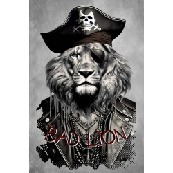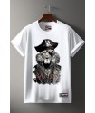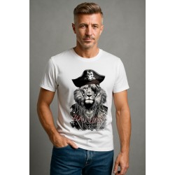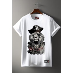 Camiseta Chico LASAL Lion Pirate Blanco. Camiseta reguar fit, de manga corta, en color blanco, con ilustración delantera de un león pirata en tonos negros y grises y la frase "BAD LION" en rojo.