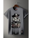 Camiseta Chico LASAL Lion Pirate Gris. Camiseta regular fit, de manga corta, en color gris, con ilustración delantera de un león pirata en tonos negros y blancos y la frase "BAD LION" en roj