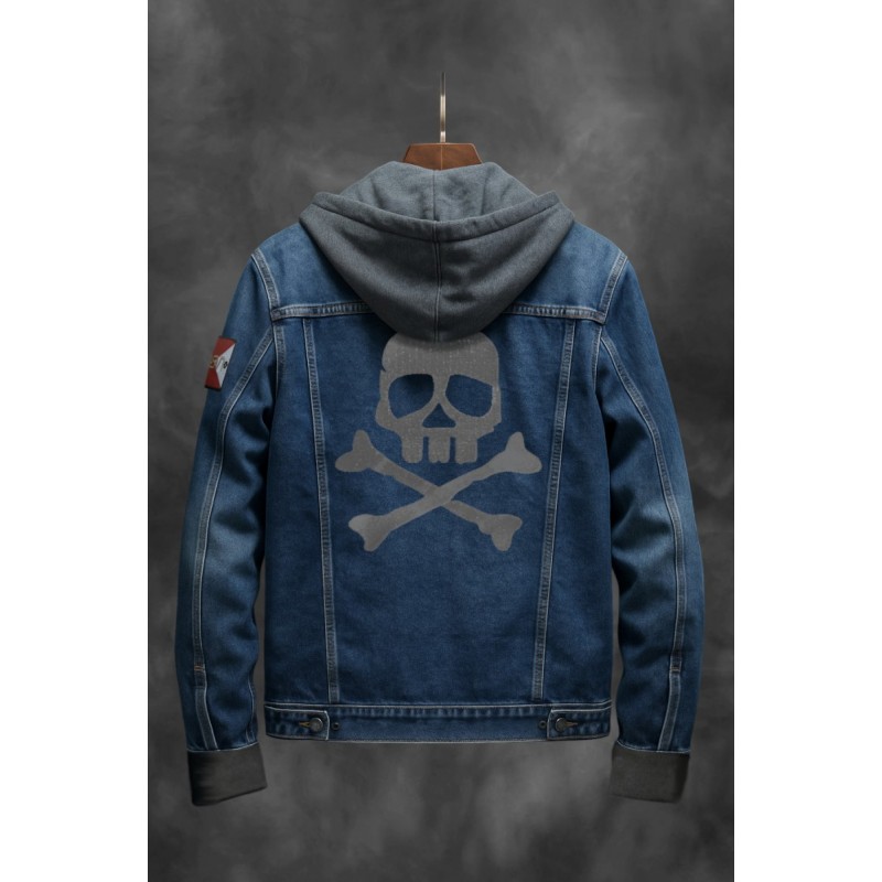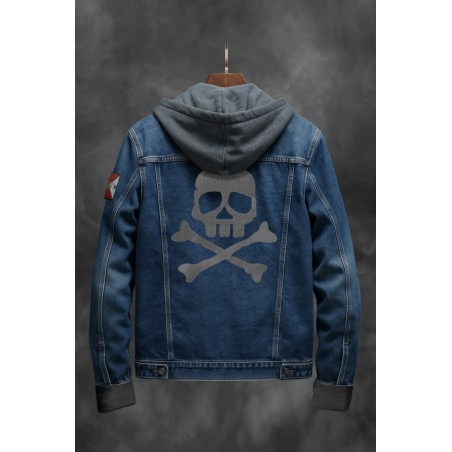 Cazadora Vaquera chico LASAL Basic Azul. Cazadora vaquera denim con capucha estraible, bolsillos laterales abiertos y de botón en el pecho. Lleva un bordado de calavera de grandes dimensiones en la espalda, y además incluye otro bordado en la manga izquierda. Como siempre incluye el logo de la firma engomado que certifica la autenticidad de la prenda. Y como no podría ser de otro modo, dispone además de la numeración aleatoria que caracteriza a al marca en el pecho.