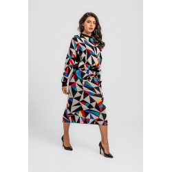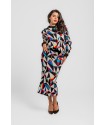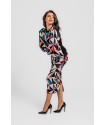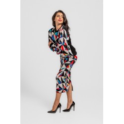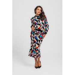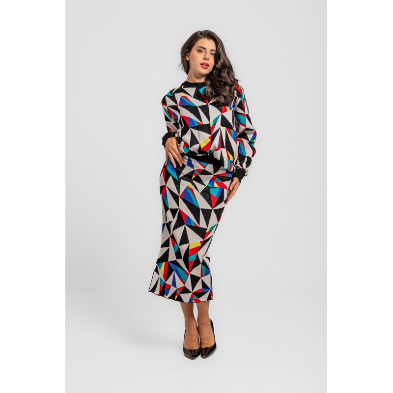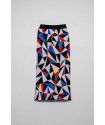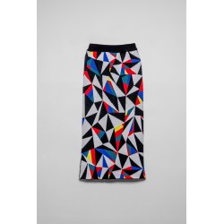 Falda punto Tejido Lolina Punk Panda. Falda recta midi de punto tejido tipo canale con estampado vectorial de figuras geométricas que combina en negro y el blanco con diversos colores llamativos a contraste.